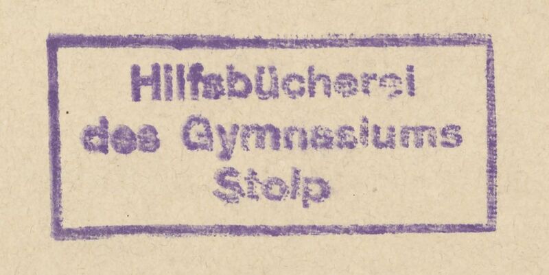 Sydow-Wagners Methodischer Schul-Atlas : 63 Haupt- und 51 Nebenkarten auf 47 Tafeln mit einem Namenverzeichnis / entworfen, bearb. und hrsg. von Hermann Wagner - fioletowa prostokątna pieczątka: Hilfsbücherei des Gymnasiums Stolp