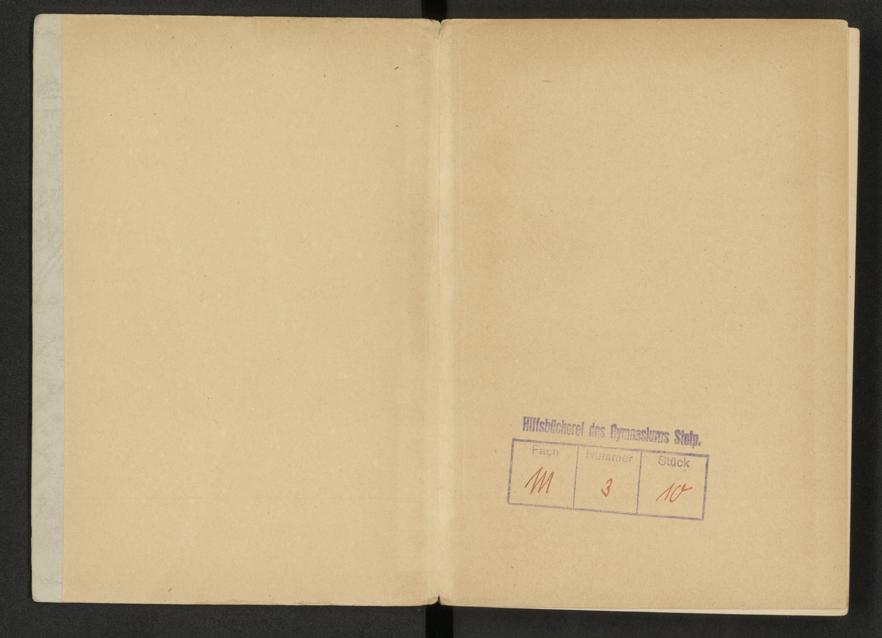Deutsche Musik für höhere Schulen - strona przedtytułowa z pieczątką prostokątną: Hilfsbücherei des Gymnasiums Stolp. Fach I Nummer I Stück I