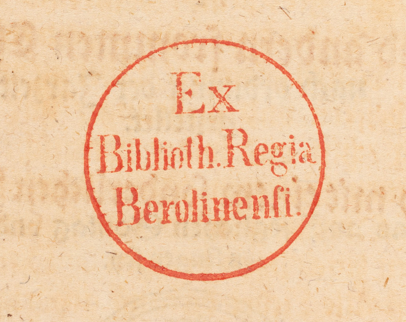 Geistliche Lieder vnnd Psalmen, Durch D. Martinum Lutherum, Vnd andern frommen Christen, nach ordnung der Jarzeit gestellet. - okrągła pieczątka „Ex Biblioth. Regia Berolinensi.” na verso karty tytułowej