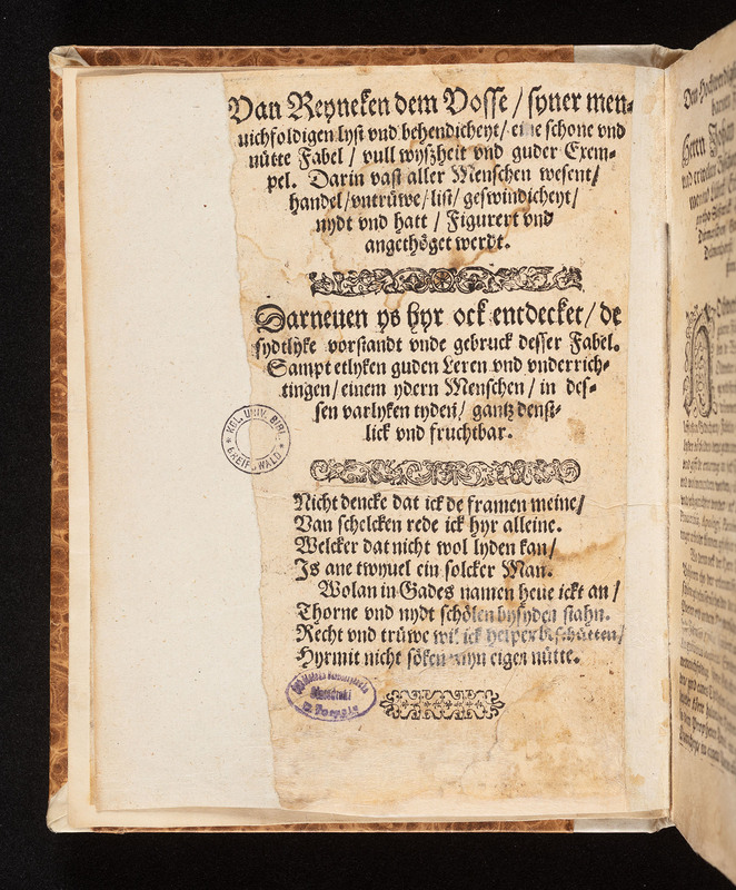 Part of De Warheyt my gantz frömde ys De Trüwe gar seltzen, dat ys gewiß. Reyneke Vosz de olde nye gedrucket, mit sidlykem vorstande vnde schonen Figuren, erlüchtet vnde vorbetert.