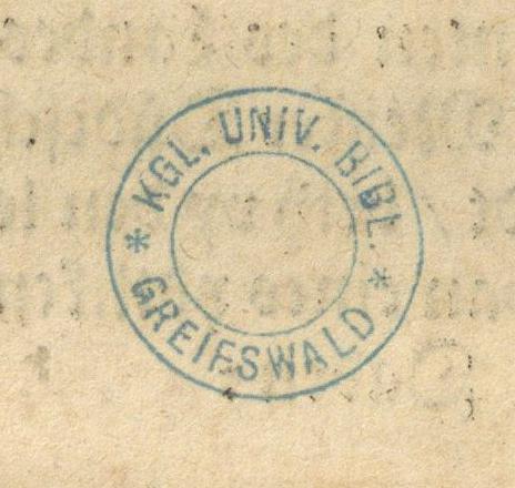 Chronica Der Prouintz Lyfflandt - pieczątka: KGL. UNIV. BIBL. GREIFSWALD