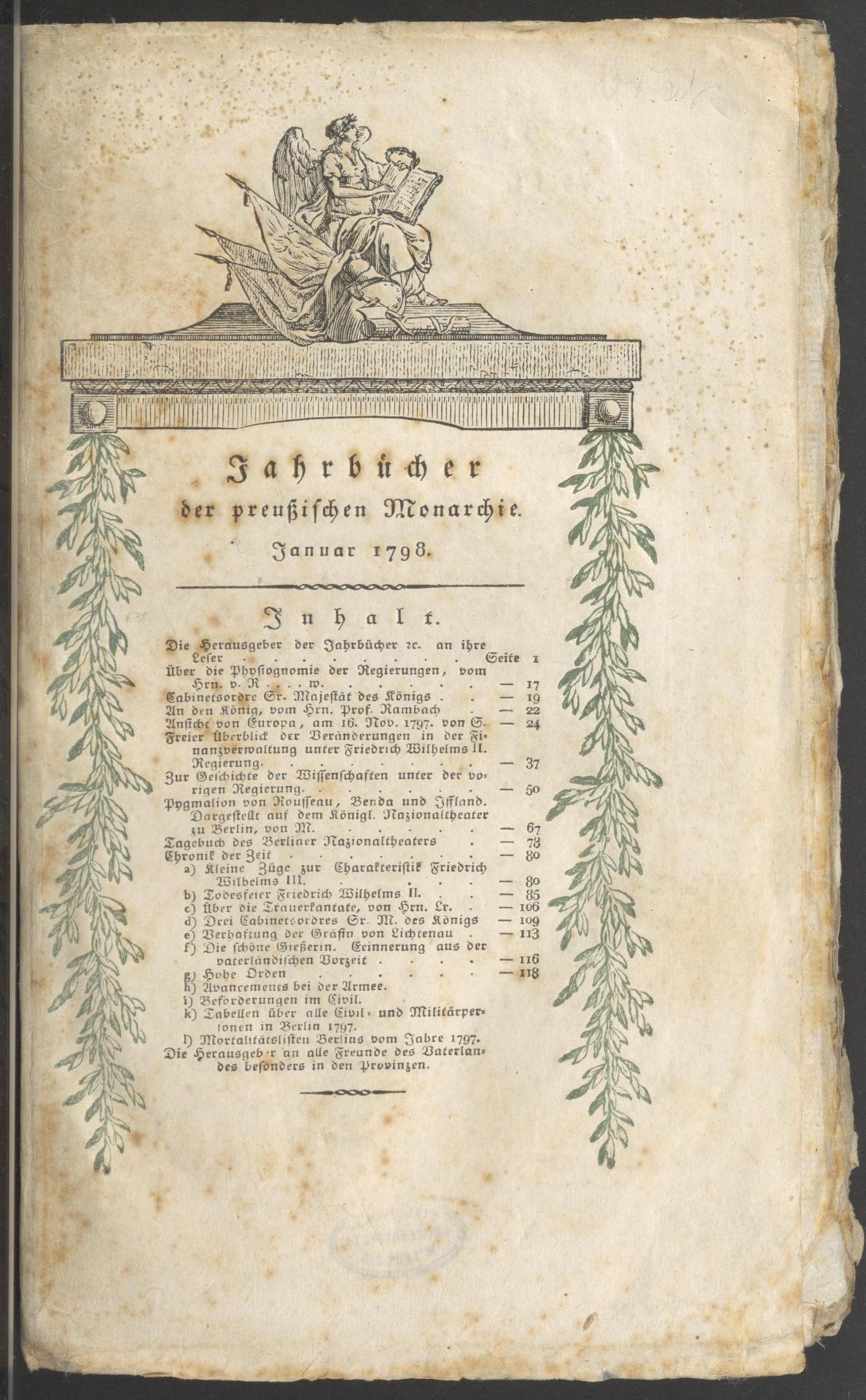 Part of Jahrbücher der preußischen Monarchie unter der Regierung Friedrich Wilhelms des Dritten; Jg. 1798 Bd. 1 Januar