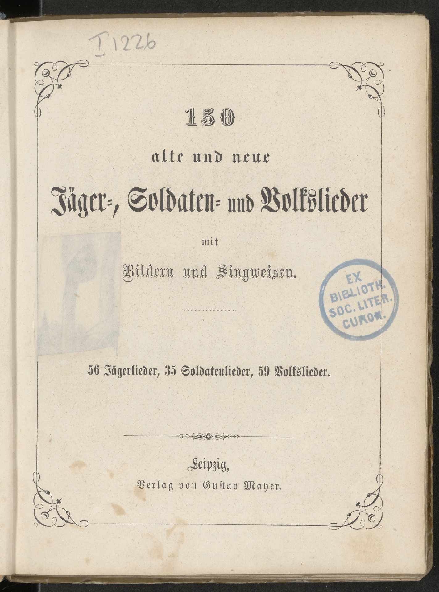 150 alte und neue Jäger-, Soldaten- und Volkslieder mit Bildern und Singweisen - strona tytułowa