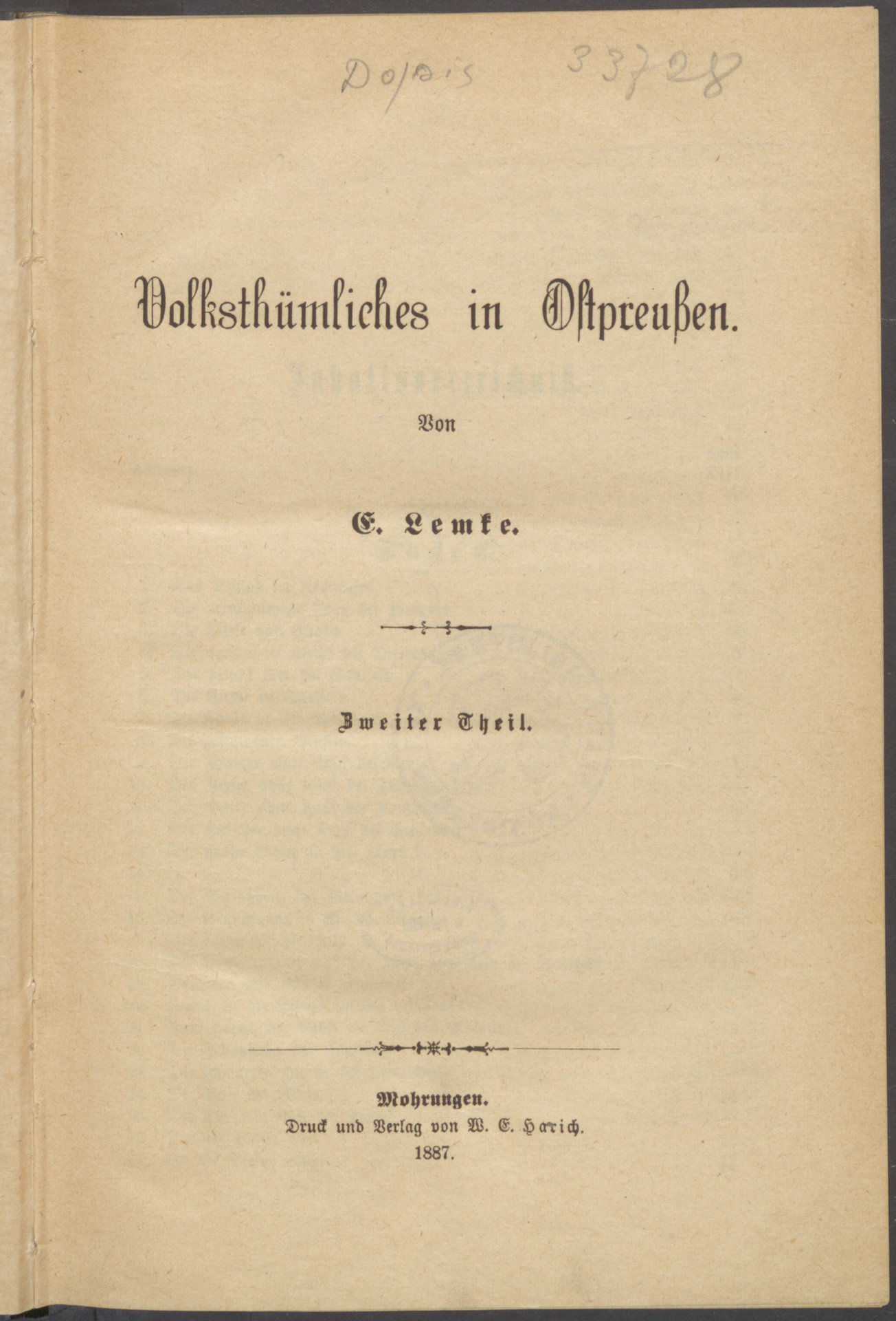 Volksthümliches in Ostpreußen T. 2 - strona tytułowa