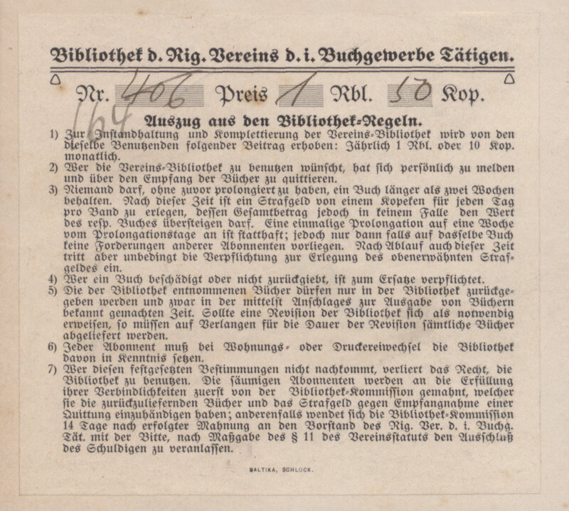 Rigaer Theater- und Tonkünstler-Lexikon : nebst Geschichte des Rigaer Theaters und der Musikalischen Gesellschaft - naklejka: Auszug d. Rig. Vereins d. i. Buchgewerbe Tätigen