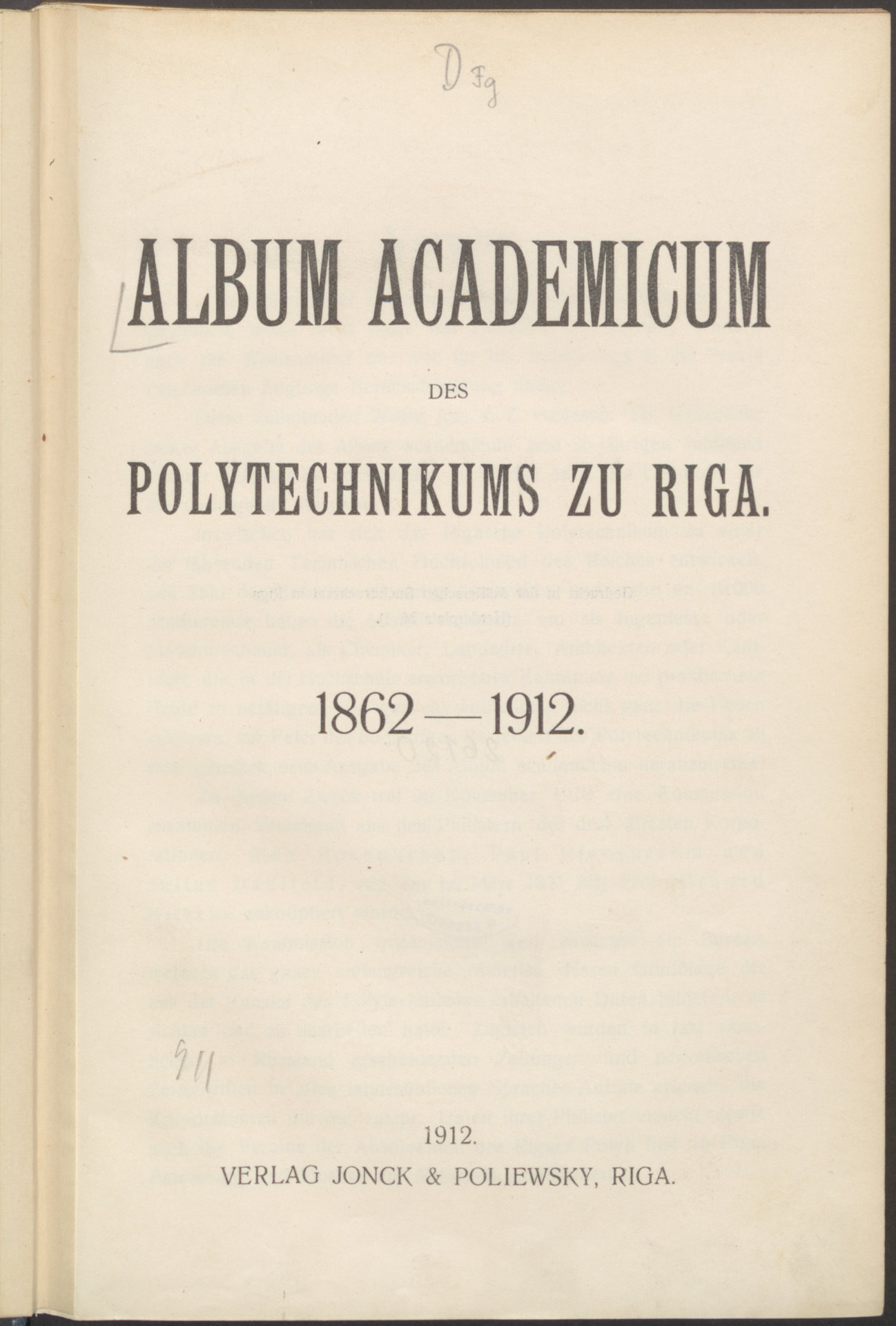 Part of Album academicum des Polytechnikums zu Riga : 1862-1912