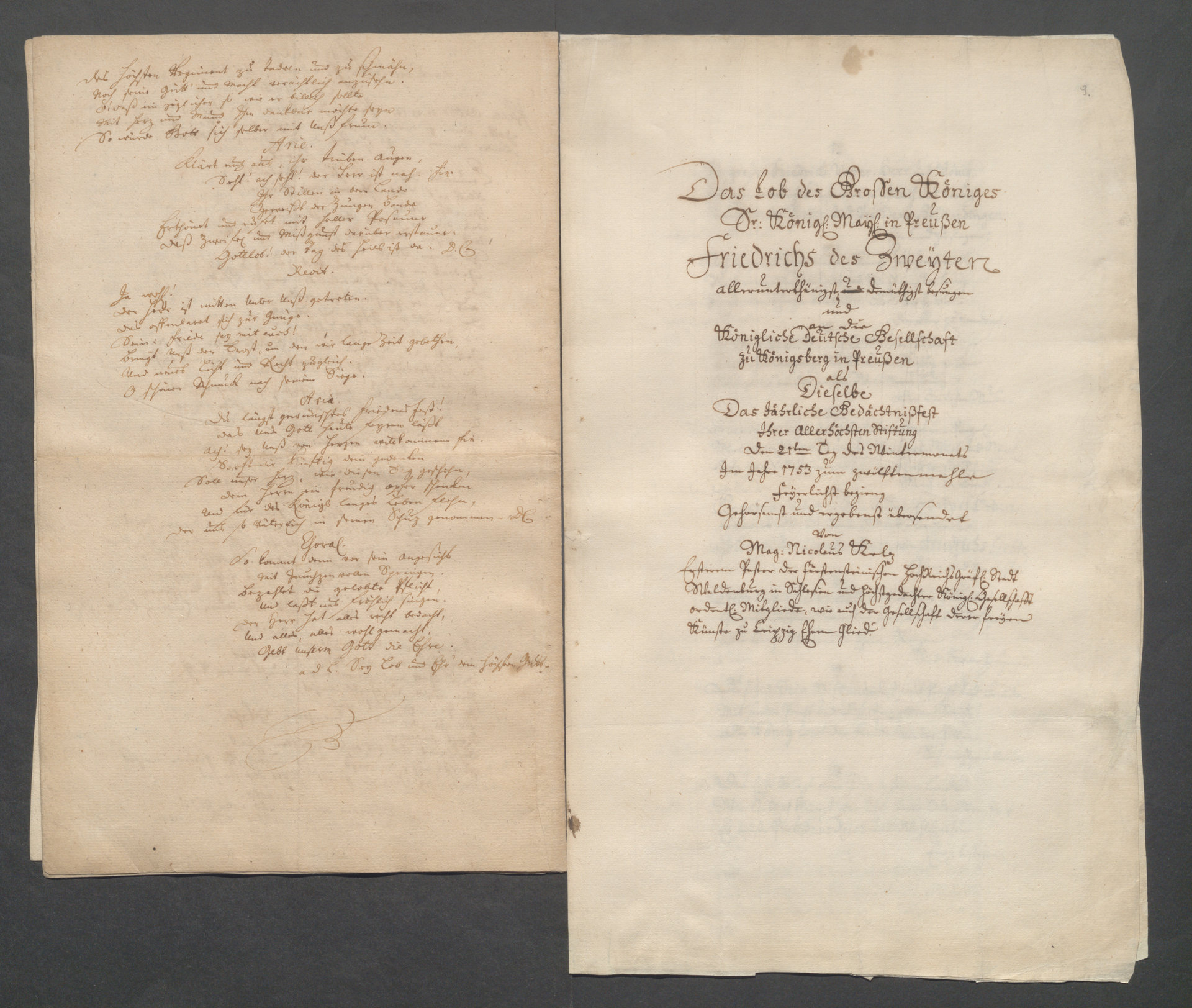 Part of Wiersze i kantaty, głównie o treści patriotycznej, na cześć Fryderyka II i jego zwycięstw w wojnach śląskich