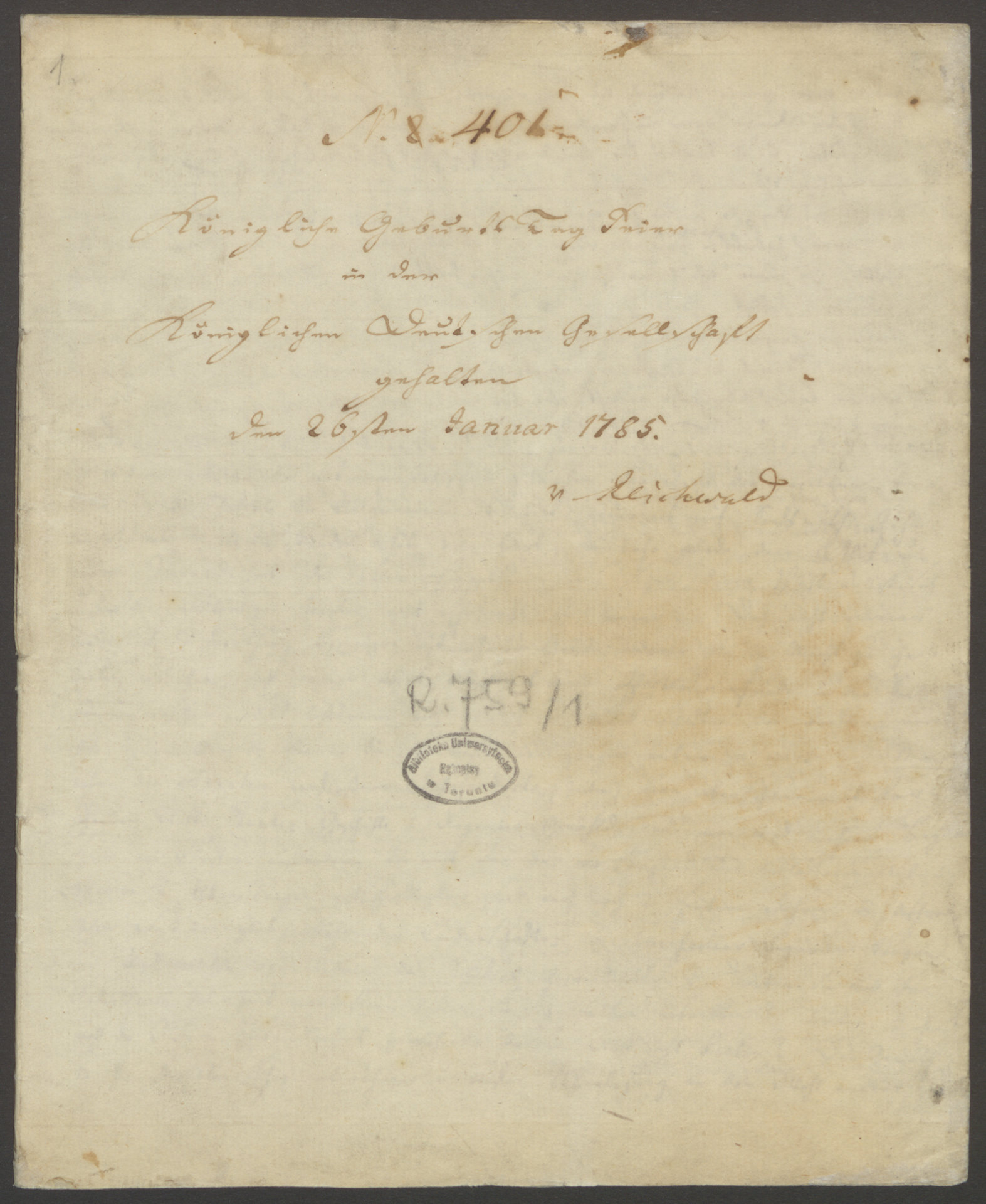 Part of Zbiór wykładów wygłoszonych na forum Königliche Deutsche Gesellschaft w Królewcu