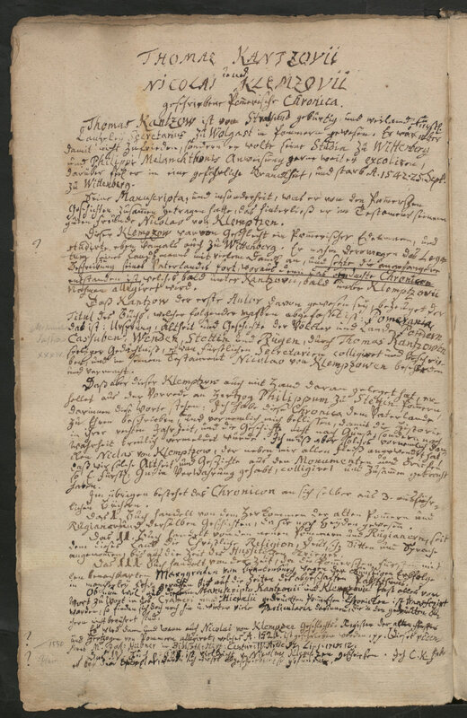 Pomerania d[as] i[st] Ursprung, Altheit und Geschichte der Völker und Lande Pommern, Cassuben, Wenden, Stettin und Rügen - kolejna strona rękopisu