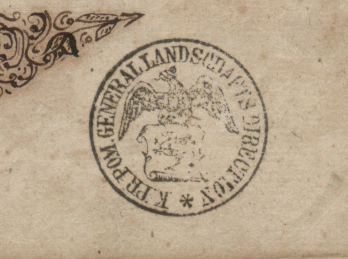 Pommer-Lande und dessen Fürsten Geschlecht-Beschreibung in IV Büchern - pieczęć Generalnej Dyrekcji Ziemstwa Kredytowego w Szczecinie