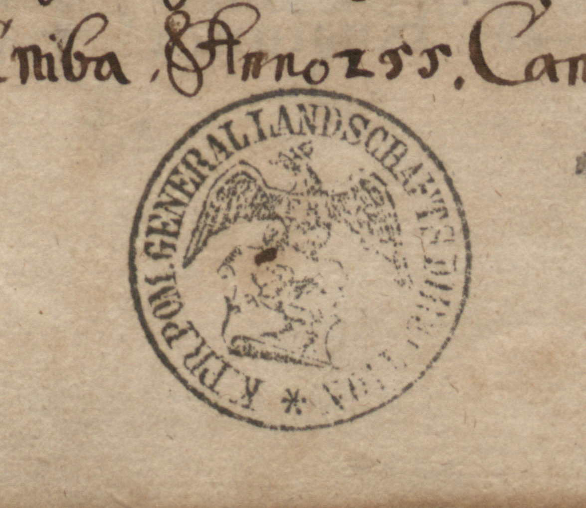 Pommer-Lande und dessen Fürsten Geschlecht-Beschreibung in IV Büchern - pieczęć Generalnej Dyrekcji Ziemstwa Kredytowego w Szczecinie