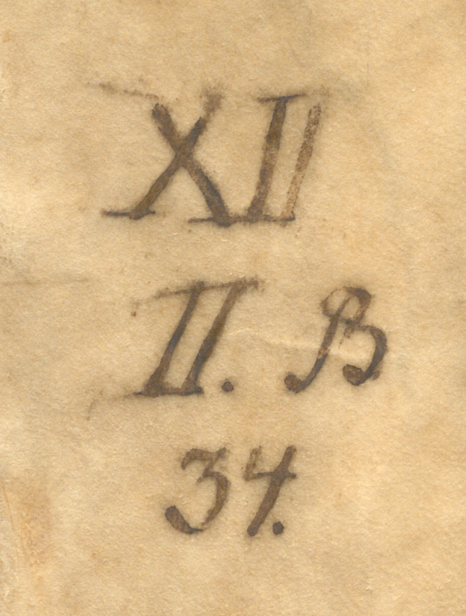 Zbiór druków i rękopisów zawierających akty prawne dotyczące szwedzkiego Pomorza Przedniego... - sygnatura wcześniejszego właściciela, historyka Pomorza Ludwiga Wilhelma Brüggemanna na grzbiecie woluminu