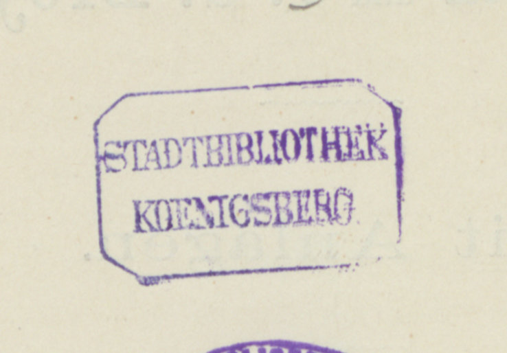 Briefwechsel des Ministers und Burggrafen von Marienburg Theodor von Schön - pieczątka ośmioboczna: STADTBIBLIOTHEK KOENIGSBERG