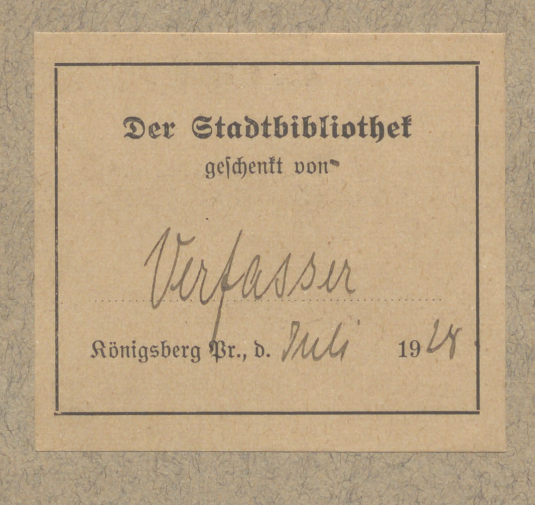 Von den Badern, Barbieren und Perückenmachern in Königsberg : Ein Beitrag zur Geschichte des Königsberger Zunftwesens - nalepka donacyjna: Der Stadtbibliothek geschenkt von Verfasser, Köigsberg Pr., d. Juli 1924.