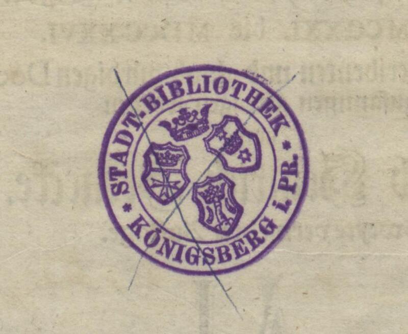 Thornische Chronica in welcher die Geschichte dieser Stadt von MCCXXI bis MDCCXXVI aus bewehrten Scribenten u. glaubw. Documentis zusammengetragen worden - pieczątka: okrągła pieczątka: STADT-BIBLIOTHEK KÖNIGSBERG i. PR.