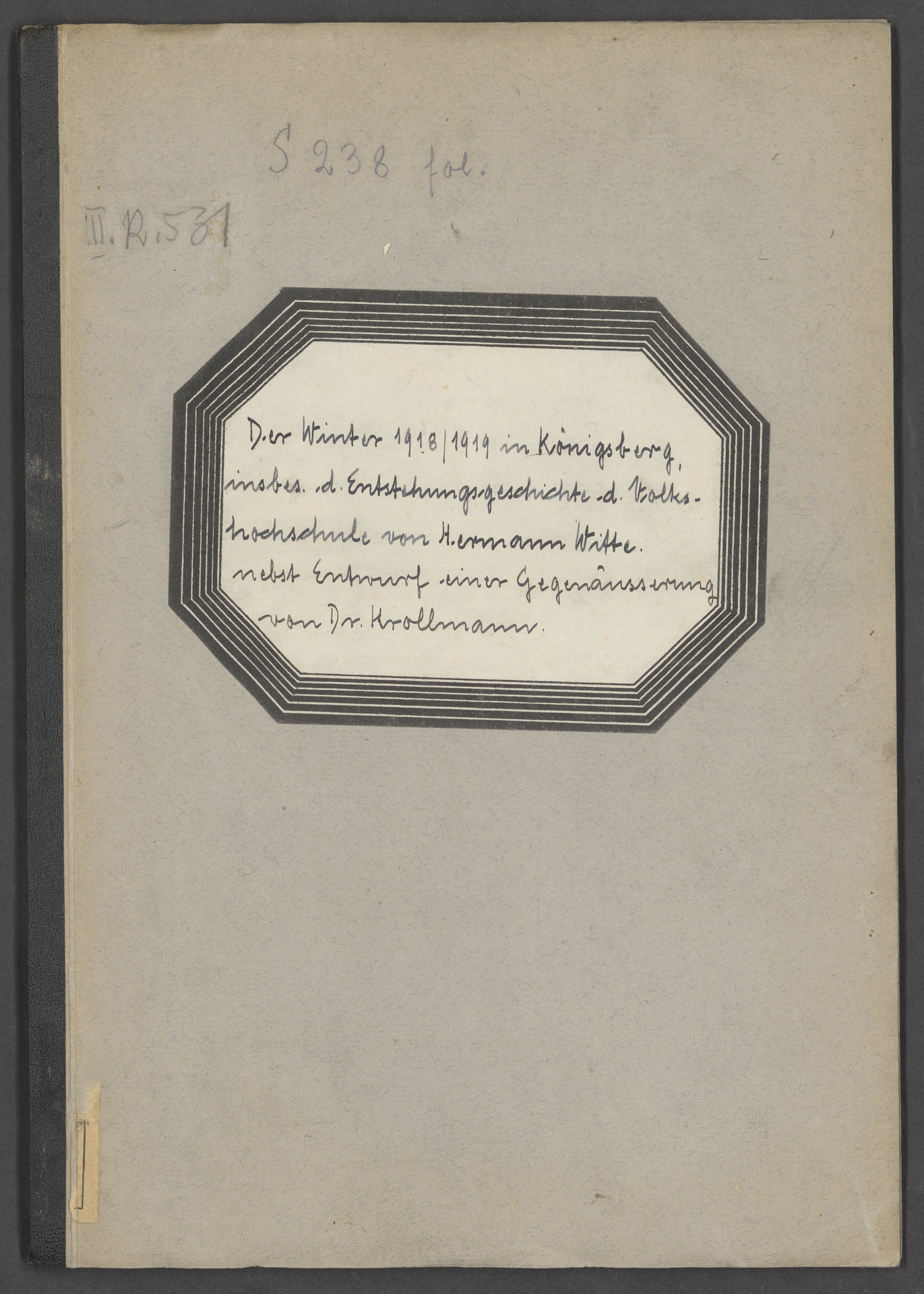 Part of Der Winter 1918/1919 in Königsberg insbes. die Entstehungsgeschichte der Volkshochschule von Hermann Witte