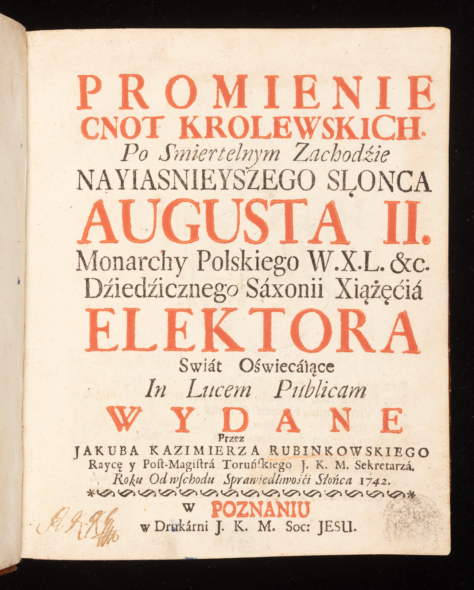 Part of Promienie Cnot Krolewskich Po Smiertelnym Zachodzie Augusta II. Monarchy Polskiego W. X. L. [et]c. Dziedźicznego Sáxonii Xiążęciá Elektora Swiát Oświecáiące