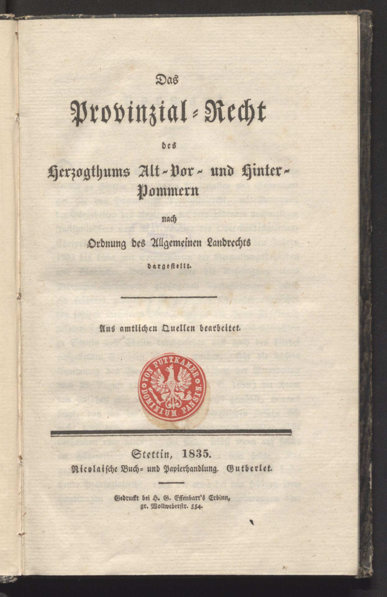 Part of Das Provinzial-Recht des Herzogthums Alt- Vor- Hinter-Pommern