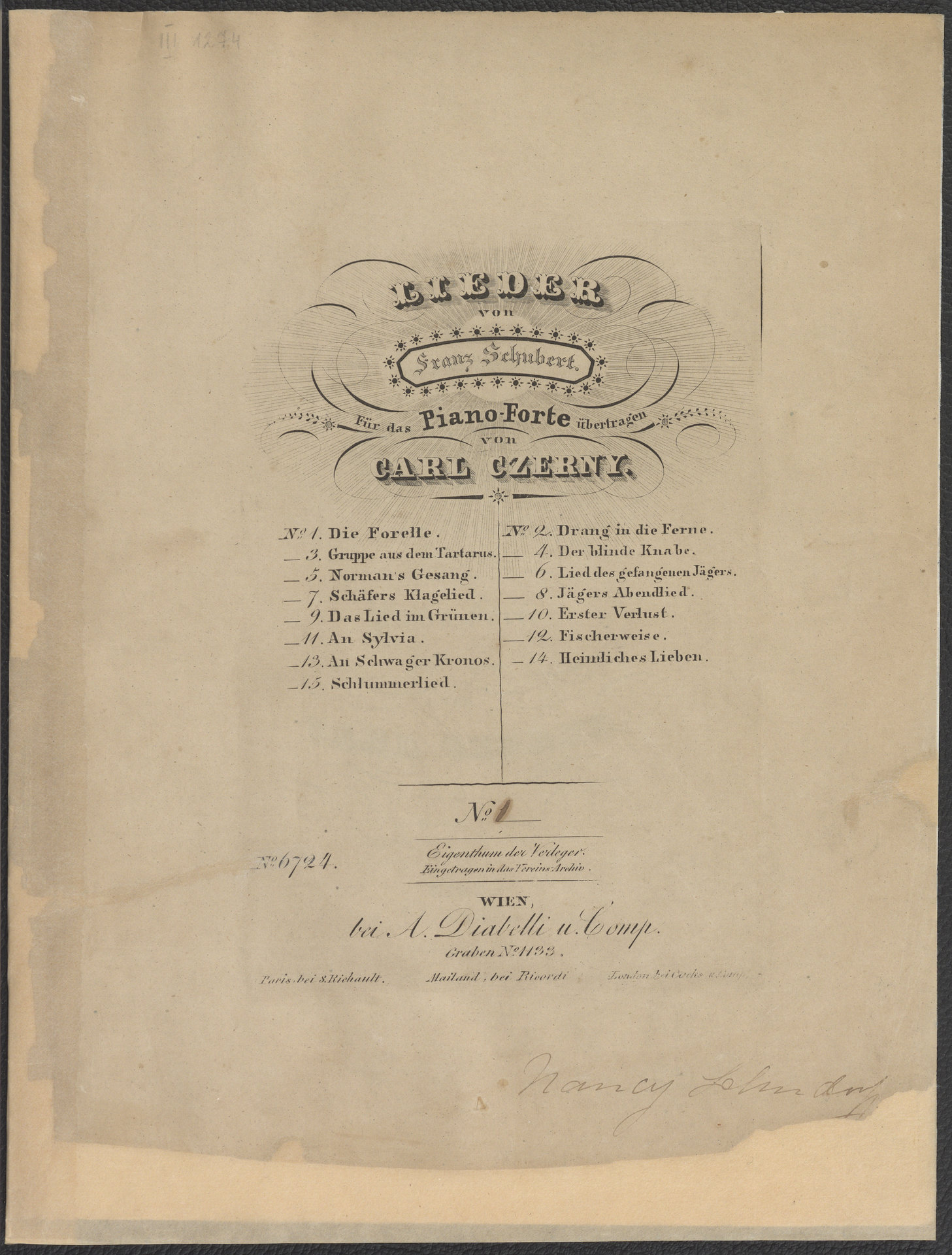 Part of Die Forelle : Lied von Franz Schubert für das Piano-Forte übertragen von Carl Czerny