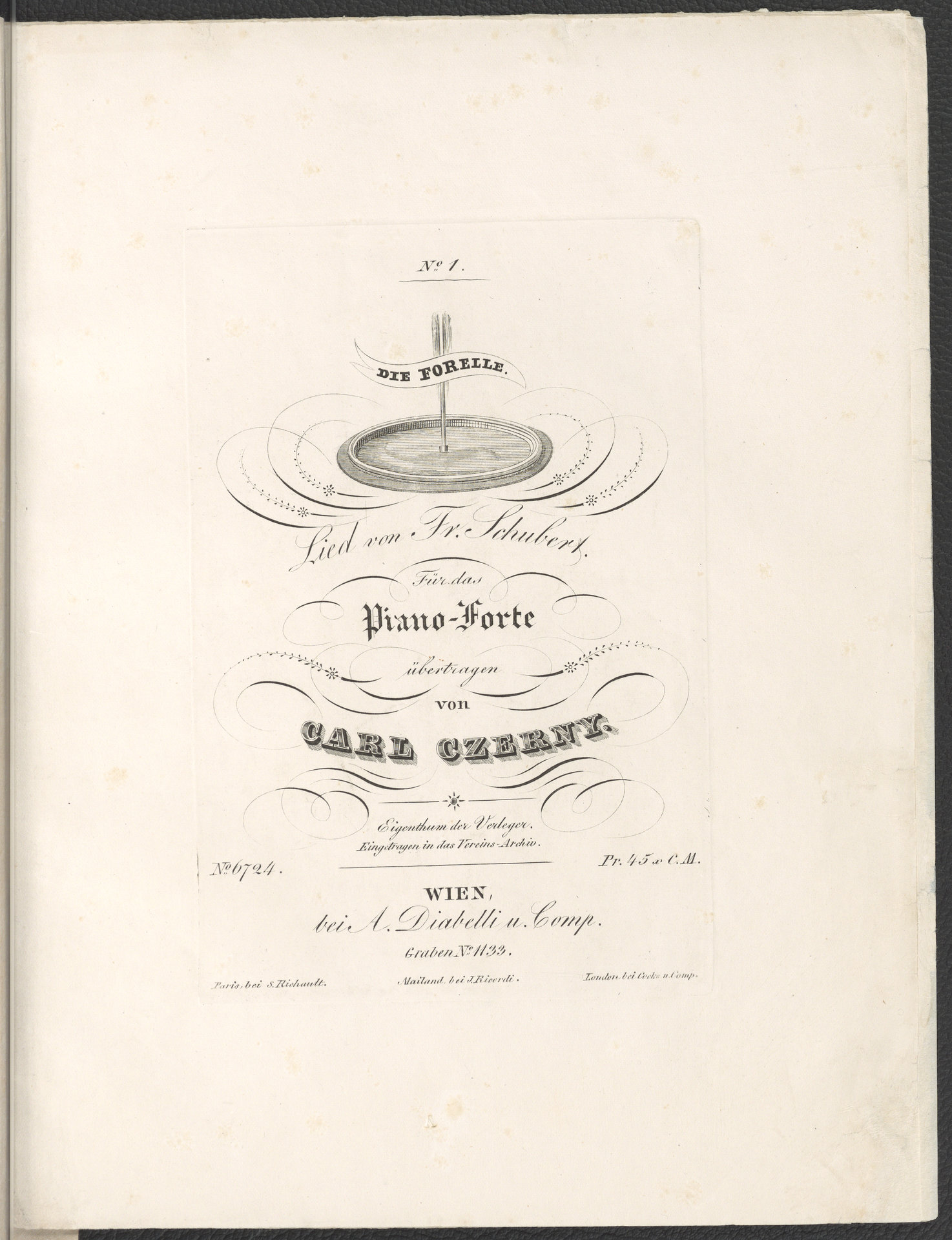 Die Forelle : Lied von Franz Schubert für das Piano-Forte übertragen von Carl Czerny - strona tytułowa