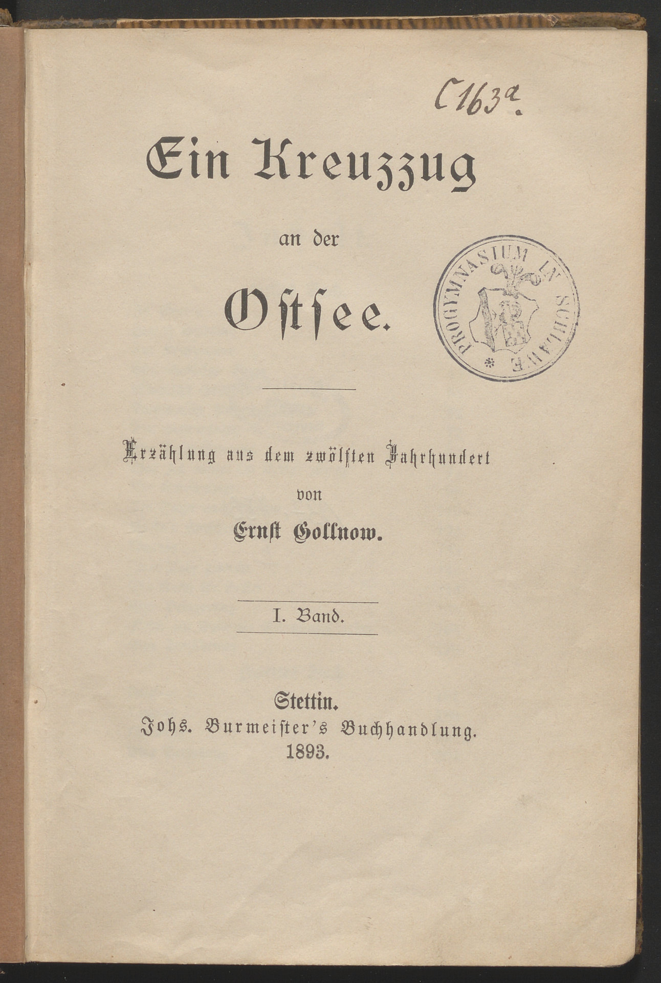 Ein Kreuzzug an der Ostsee : Erzählung aus dem 12-ten Jahrhundert. Bd. 2 - strona tytułowa z pieczątką