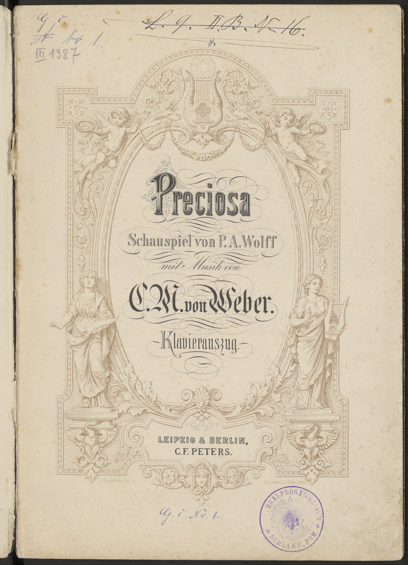 Preciosa. Schauspiel von P. A. Wolff - strona tytułowa z pieczątką