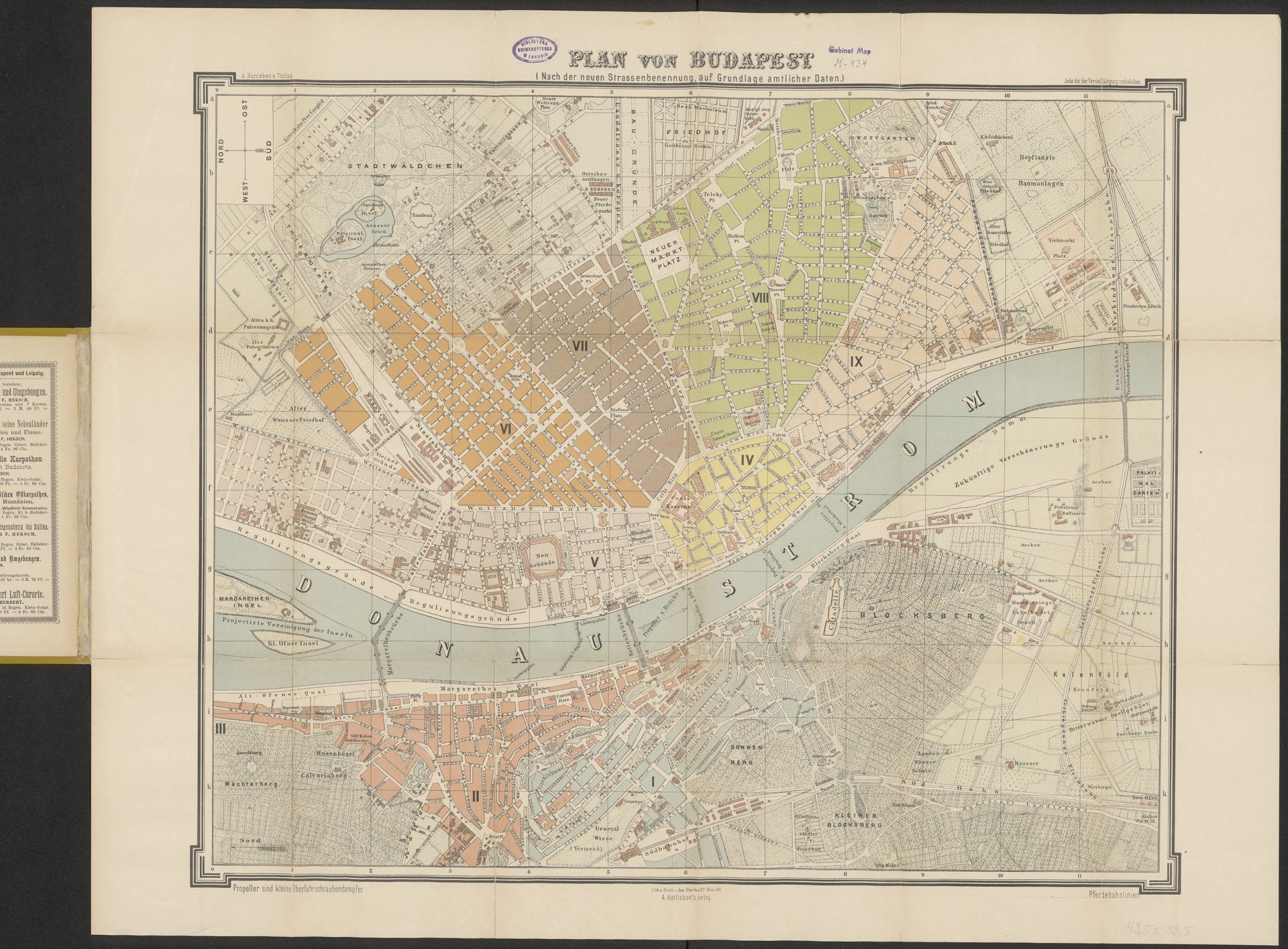 Part of Plan von Budapest mit kurzem Wegweiser und Strassenverzeichniss in ungarischer und deutscher Sprache. Zweite Auflage