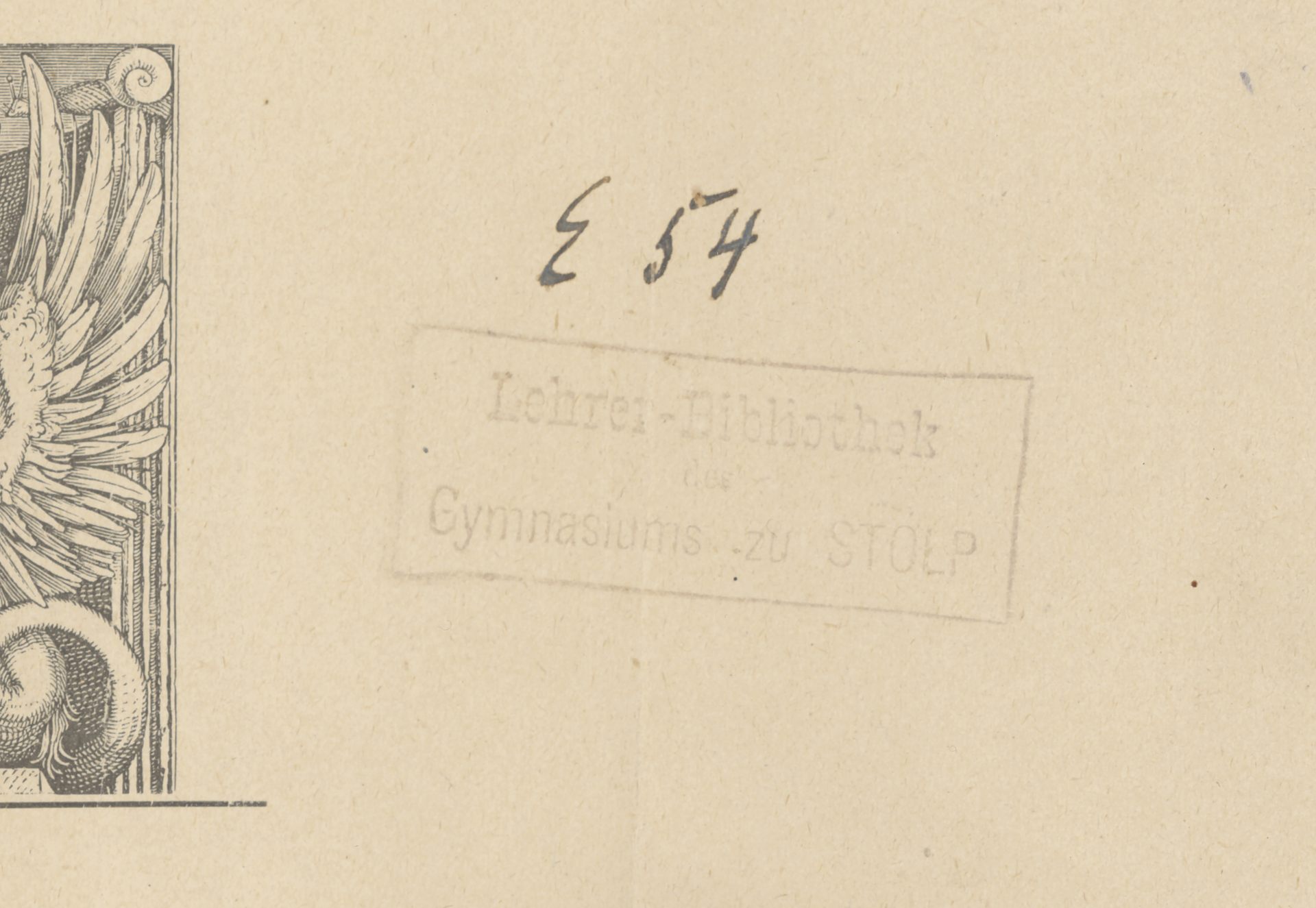 Andrees allgemeiner Handatlas in 228 Haupt- und 198 Nebenkarten. Achte neubearbeitete und vermehrte Auflage. - Pieczątka prostokątna Lehrer-Bibliothek des Gimnasiums zu STOLP