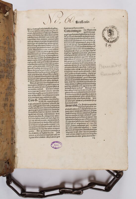 Casus longi super quinque libros Decretalium / Bernardus Parmensis - karta z pieczątką: "Siegel der Hoeheren Buergerschule zu Stolp".