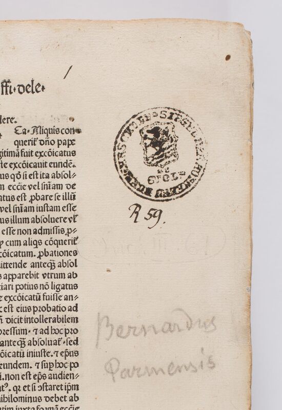 Casus longi super quinque libros Decretalium / Bernardus Parmensis - pieczątka: "Siegel der Hoeheren Buergerschule zu Stolp".