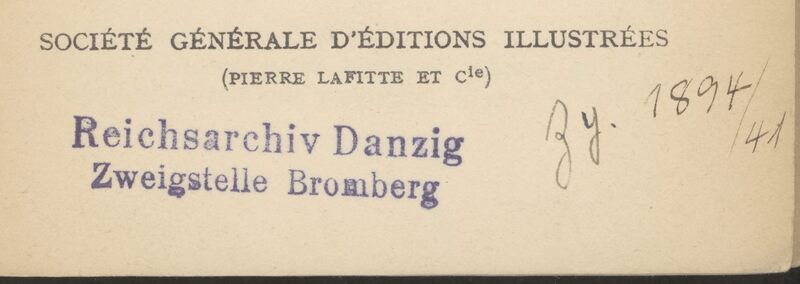 Propos de guerre - pieczątka i sygnatura bydgoskiego oddziału Archiwum Rzeszy w Gdańsku
