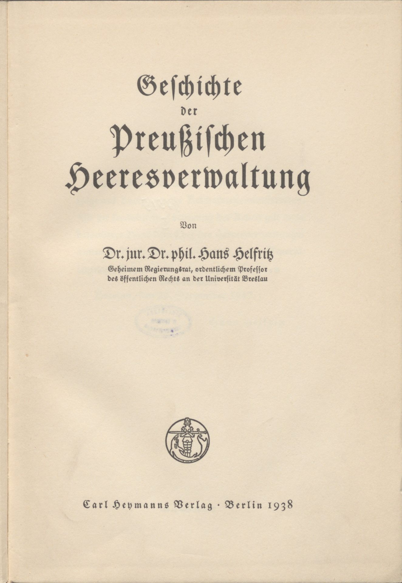Geschichte der preußischen Heeresverwaltung - strona tytułowa