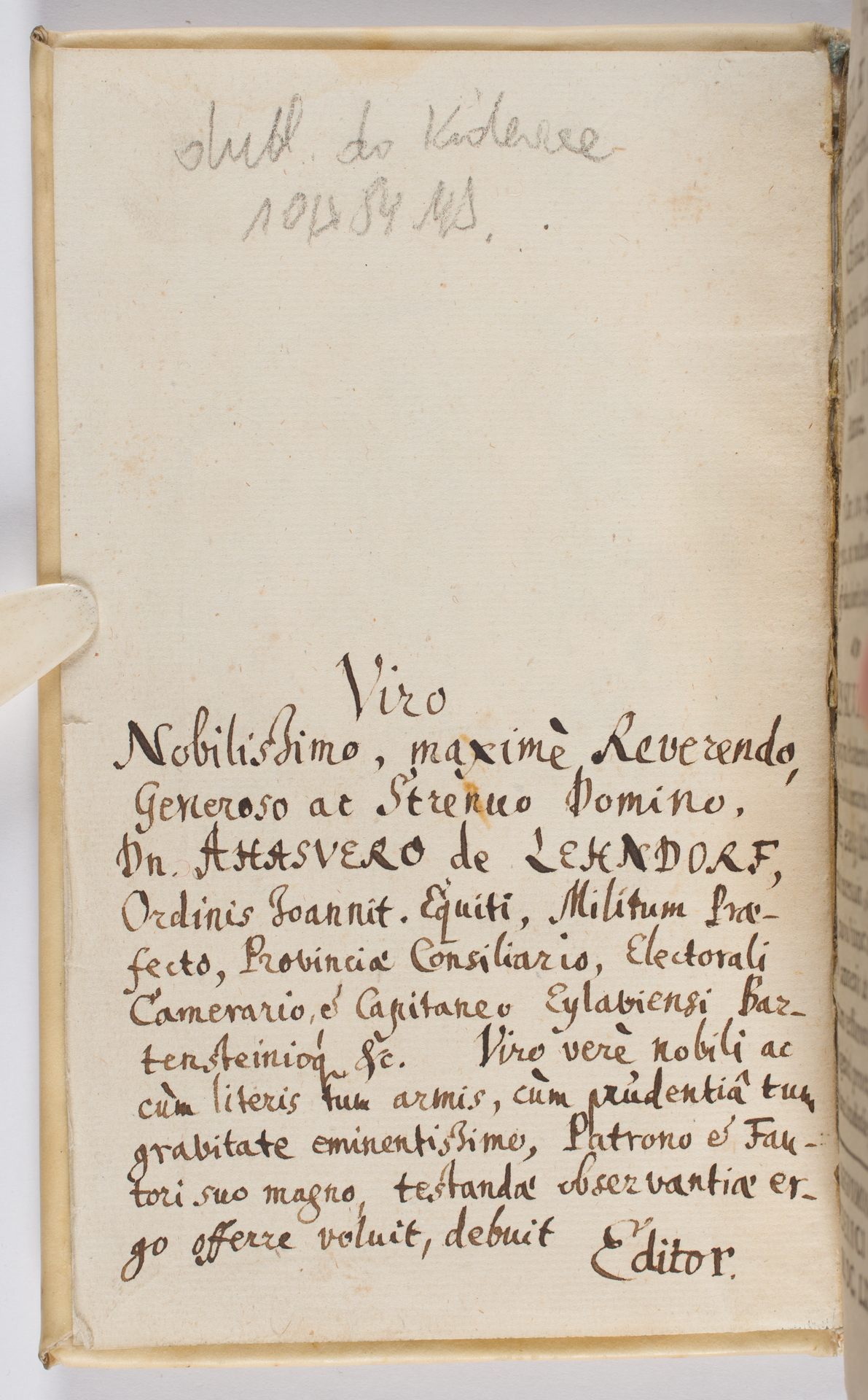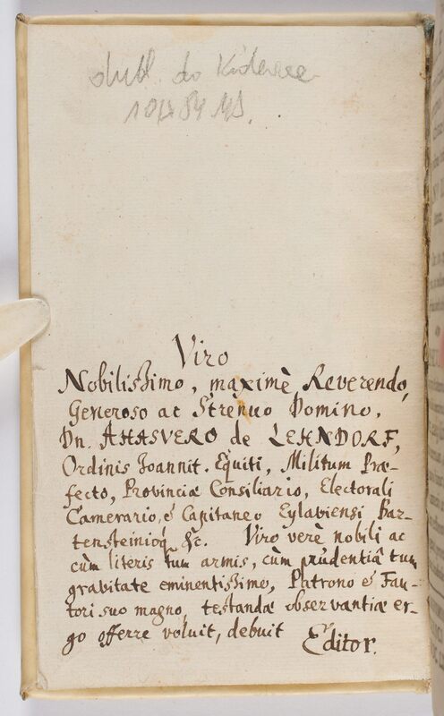 Formulae Quaedam caute & citra scandalum loquendi de praecipuis Christianae doctrinae locis, Pro iunioribus Verbi Ministris - dedykacja wydawcy dla Ahasvera Lehndorffa (1637-1688)