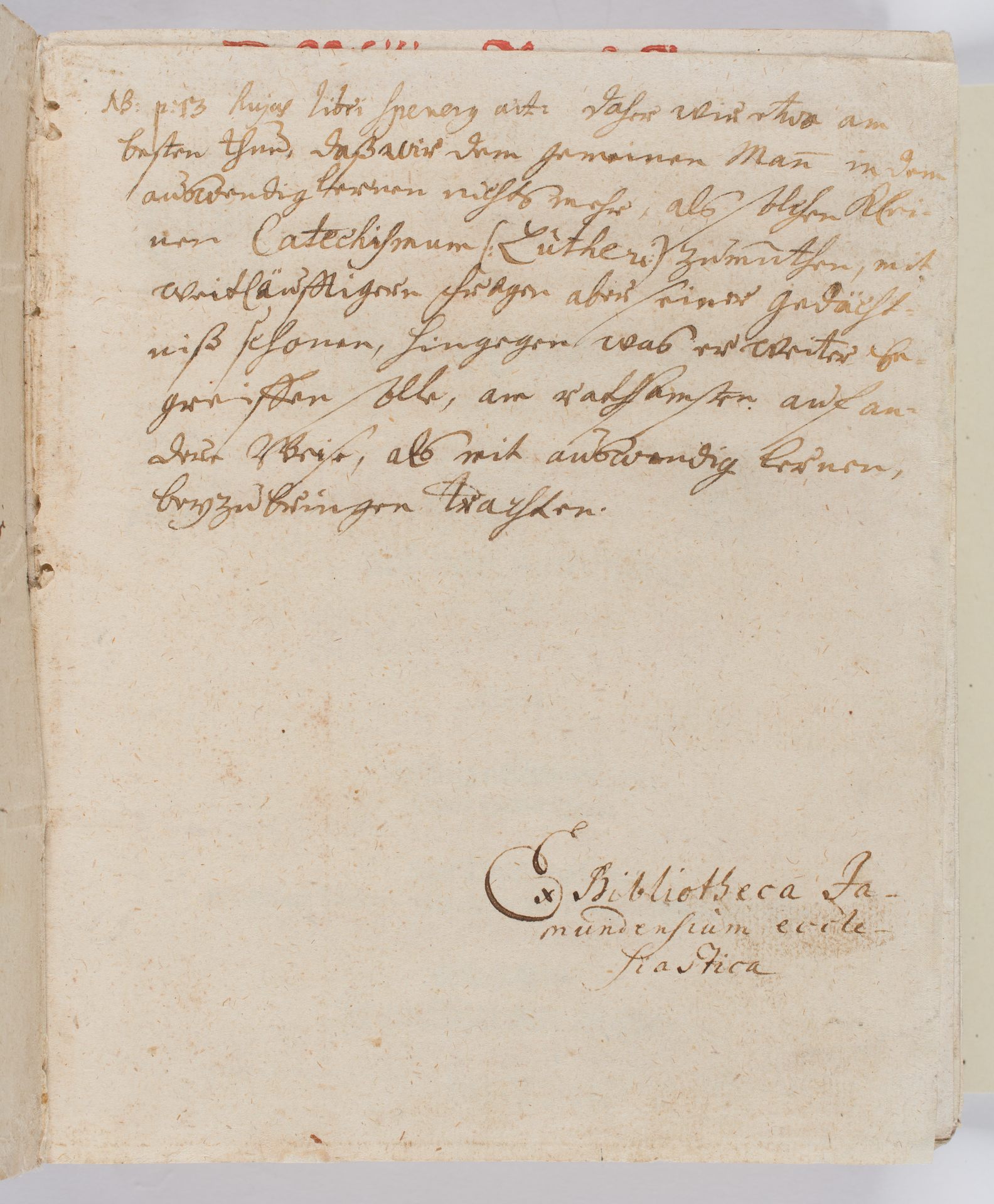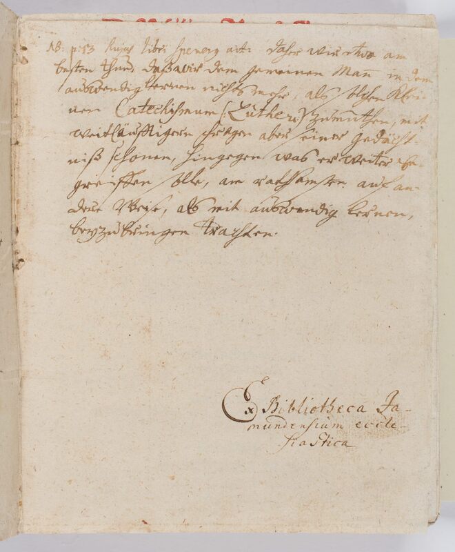 Kurtze Catechismus-Predigten - zapiska proweniencyjna: Ex Bibliotheca Jamundensium ecclesiastica