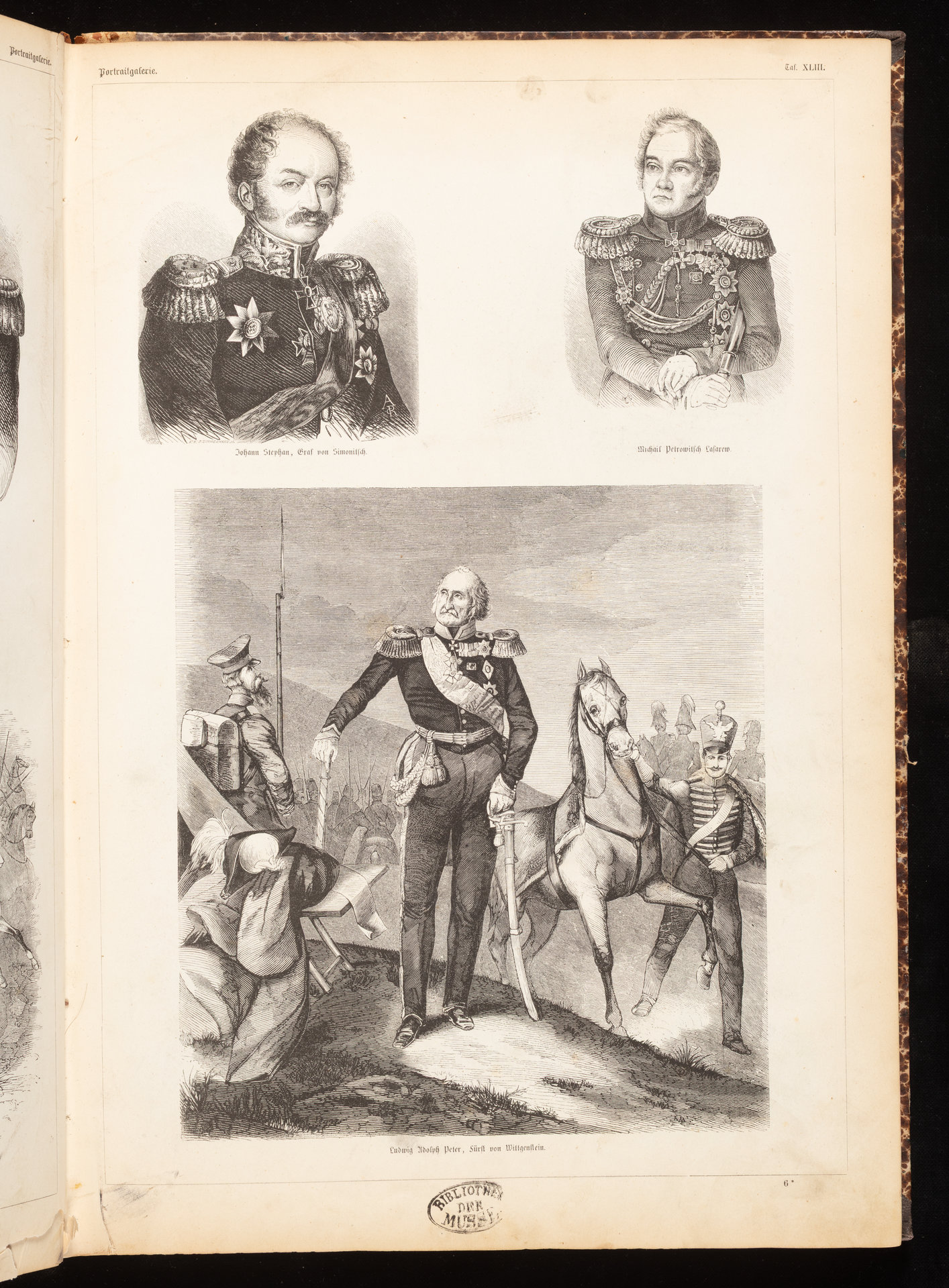 Galerie denkwürdiger Persönlichkeiten der Gegenwart. Nach Originalzeichnungen, Gemälden, Statuen und Medaillen - pieczątka owalna: Bibliothek Der Musse