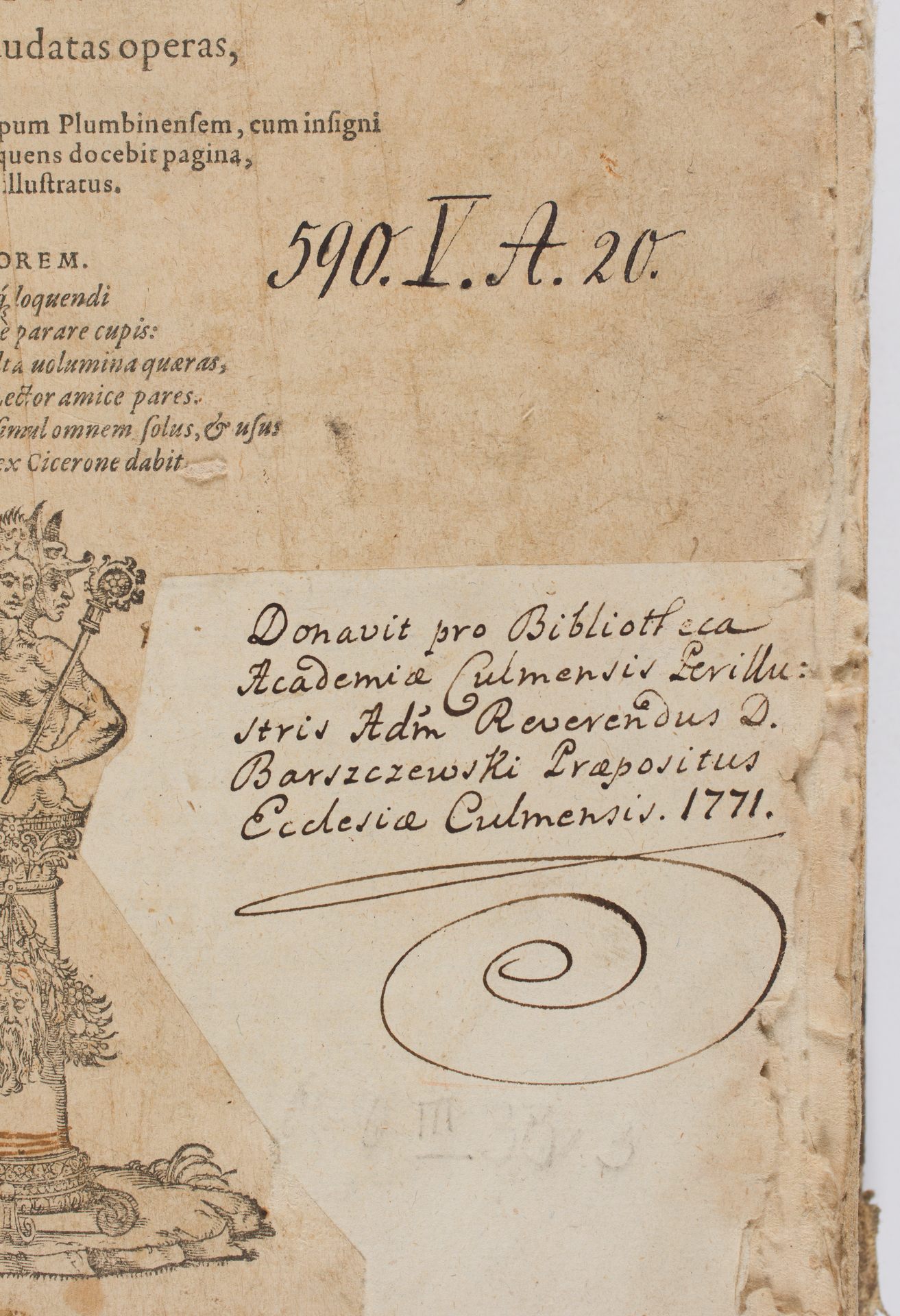 Nizolivs Sive Thesavrvs Ciceronianvs, Post Mar. Nizolii, Basilii Zanchi, & Caelii Secundi Curionis, nunquam satis laudatas operas, Per Marcellvm Squarcialupum Plumbinensem, cum insigni Accessione ... digestus & illustratus. ... - zapiska proweniencyjna na stronie tytułowej