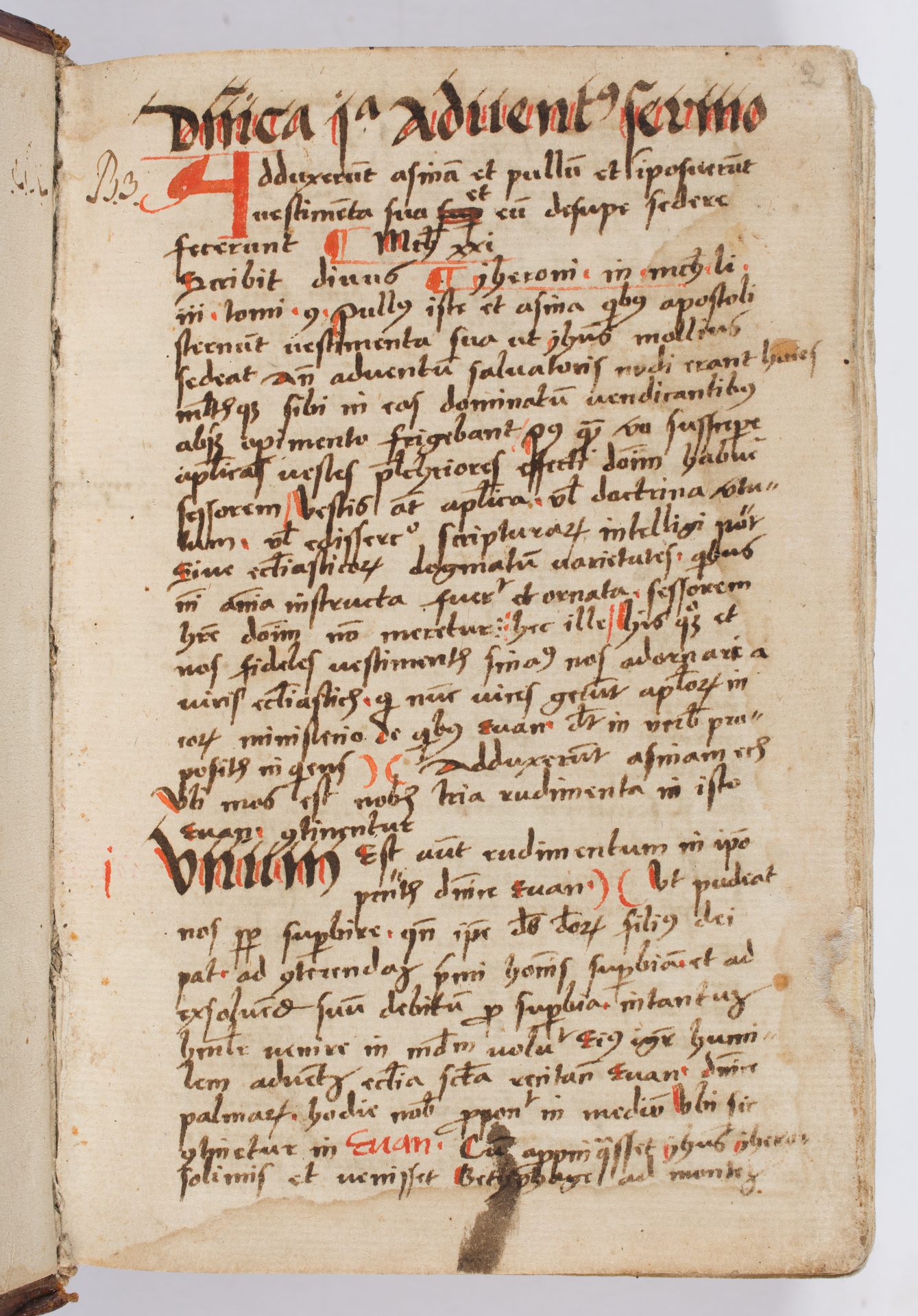 Sermones de tempore, prima pars - sygnatura biblioteki klasztoru bernardynów w Lubawie: B. 3 (k. 2r)