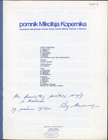 Observance of Mikolaj Kopernik 500th anniversary of birth : The Polish Canadian Club – Chathan, Ont. Saturday, April 14th, 1973 Zaproszenie na wystawę rzeźb Mikołaja Kopernika autorstwa Mariana Owczarskiego zorganizowaną przez Klub Polsko-Kanadyjski w Chathan w ramach bchodów 500. rocznicy urodzin Mikołaja Kopernika. Druk zawiera krótki biogram Mikołaja Kopernika i program wydarzenia.