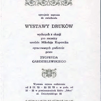 - Zaproszenie na wystawę druków wydanych z okazji 500. rocznicy urodzin Mikołaja Kopernika opracowanych graficznie przez Zygfryda Gardzielewskiego