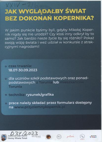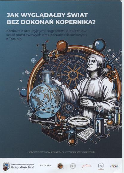 Konkurs plastyczny ogłoszony przez Stowarzyszenie Inicjatywa STEAM w ramach projektu "PrzyZiemny Kopernik" z okazji 550. rocznicy urodzin Mikołaja Kopernika, skierowany do uczniów toruńskich szkół podstawowych i ponadpodstawowych, prace wykonywane zostały w technikach rysunkowych i graficznych.
