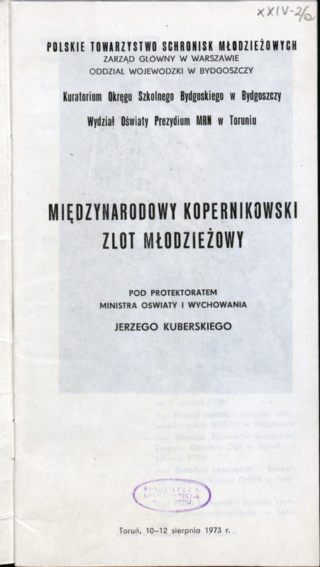 Międzynarodowy Kopernikowski Zlot Młodzieży : Toruń, 10-12 sierpnia 1973 roku