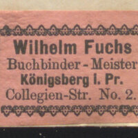 12. Pieczęć owalna i naklejka introligatora Wilhelma Fuchsa: „Wilhelm Fuchs Buchbindermeister”;