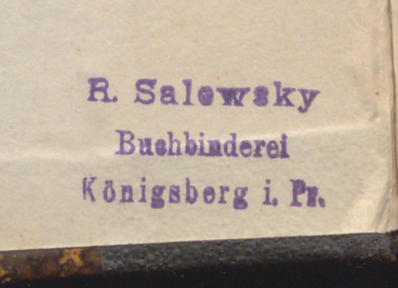 - Pieczątka introligatora: R. Salewsky. Büühbinderei. Königsberg i. Pr.