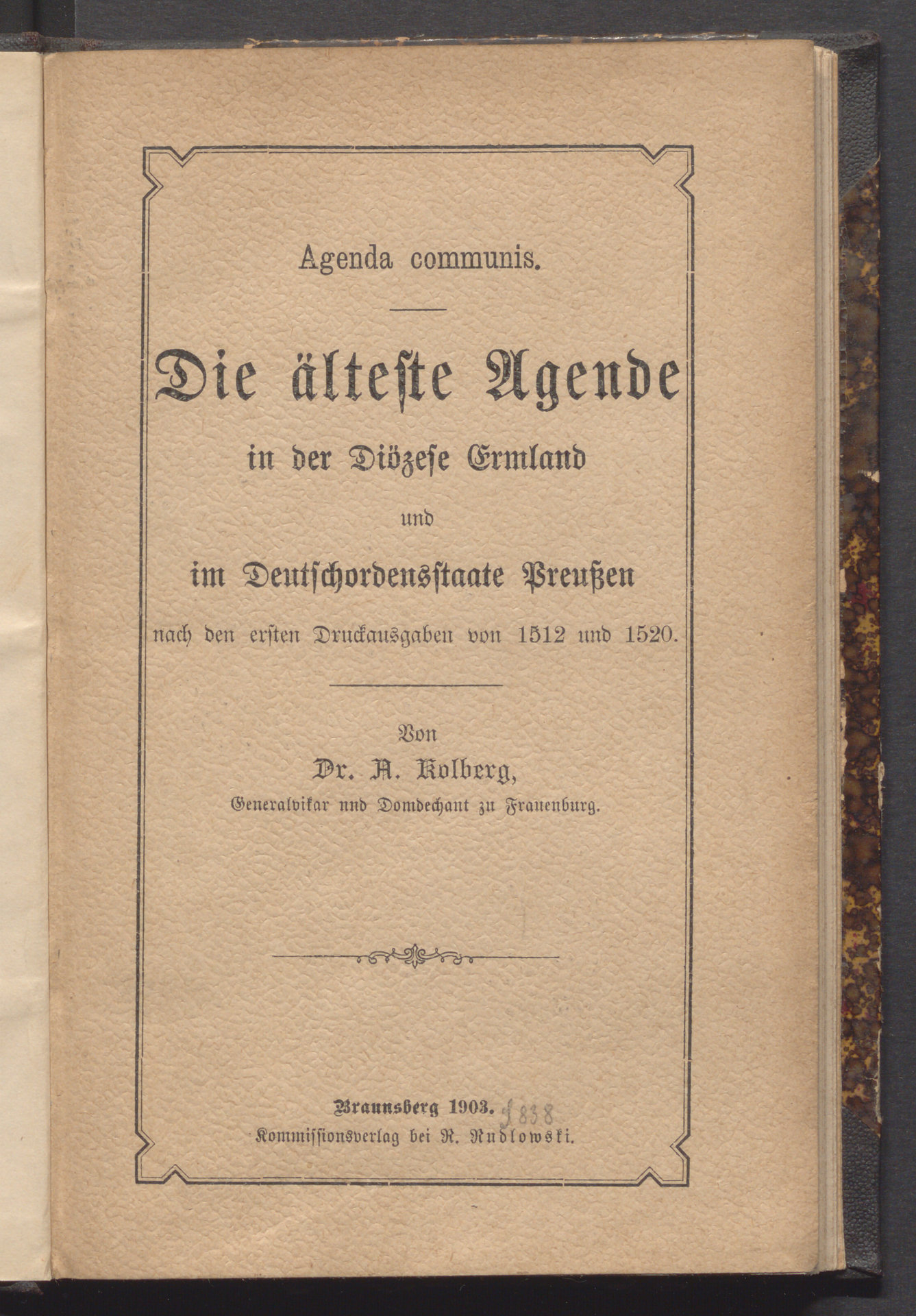 Die älteste Agende in der Diözese Ermland und Deutschordensstaate Preussen : nach den ersten Druckausgaben von 1512 und 1520