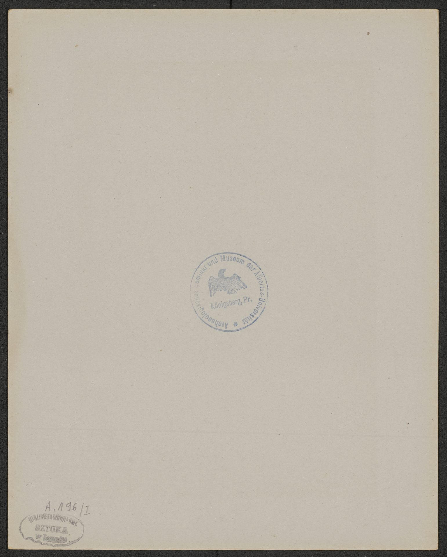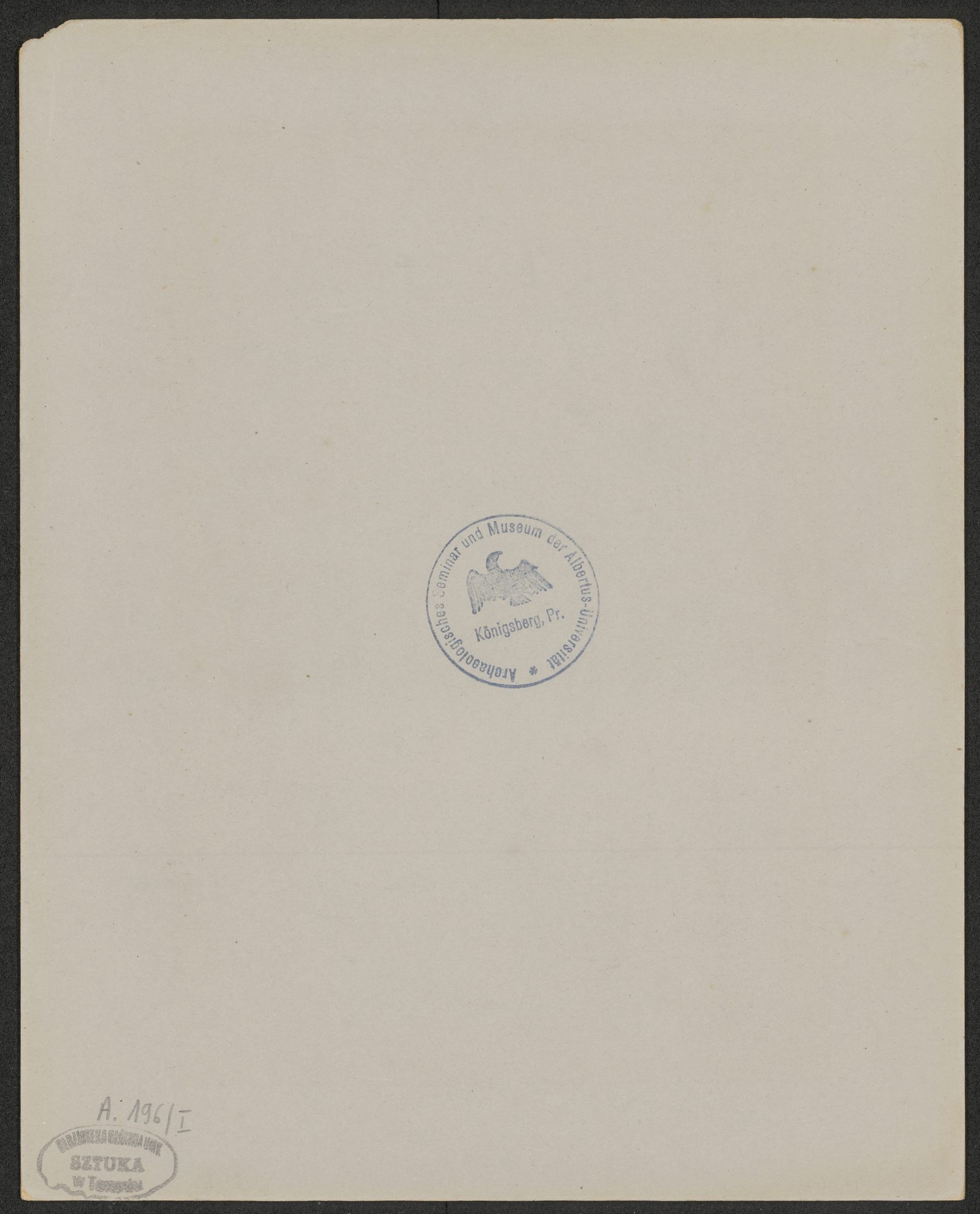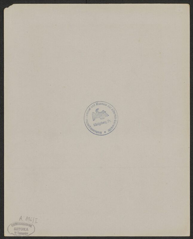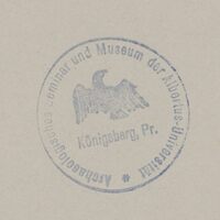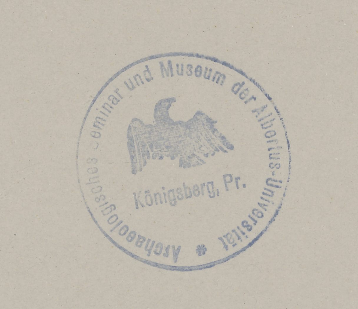 - Okrągła pieczęć na awersie tablic: Archeologisches Semminar und Museum der Albertus-Universität