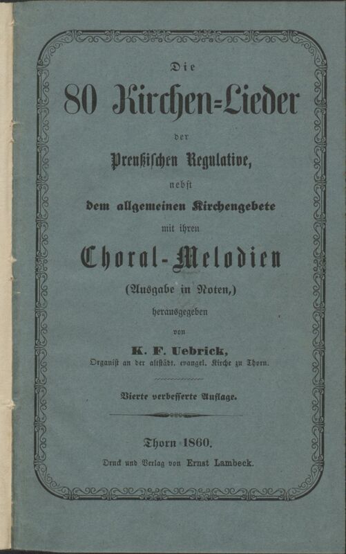 - Die 80 Kirchen-Lieder der Preussischen Regulative : nebst dem allgemeinen Kirchengebete mit ihren Choral-Melodien