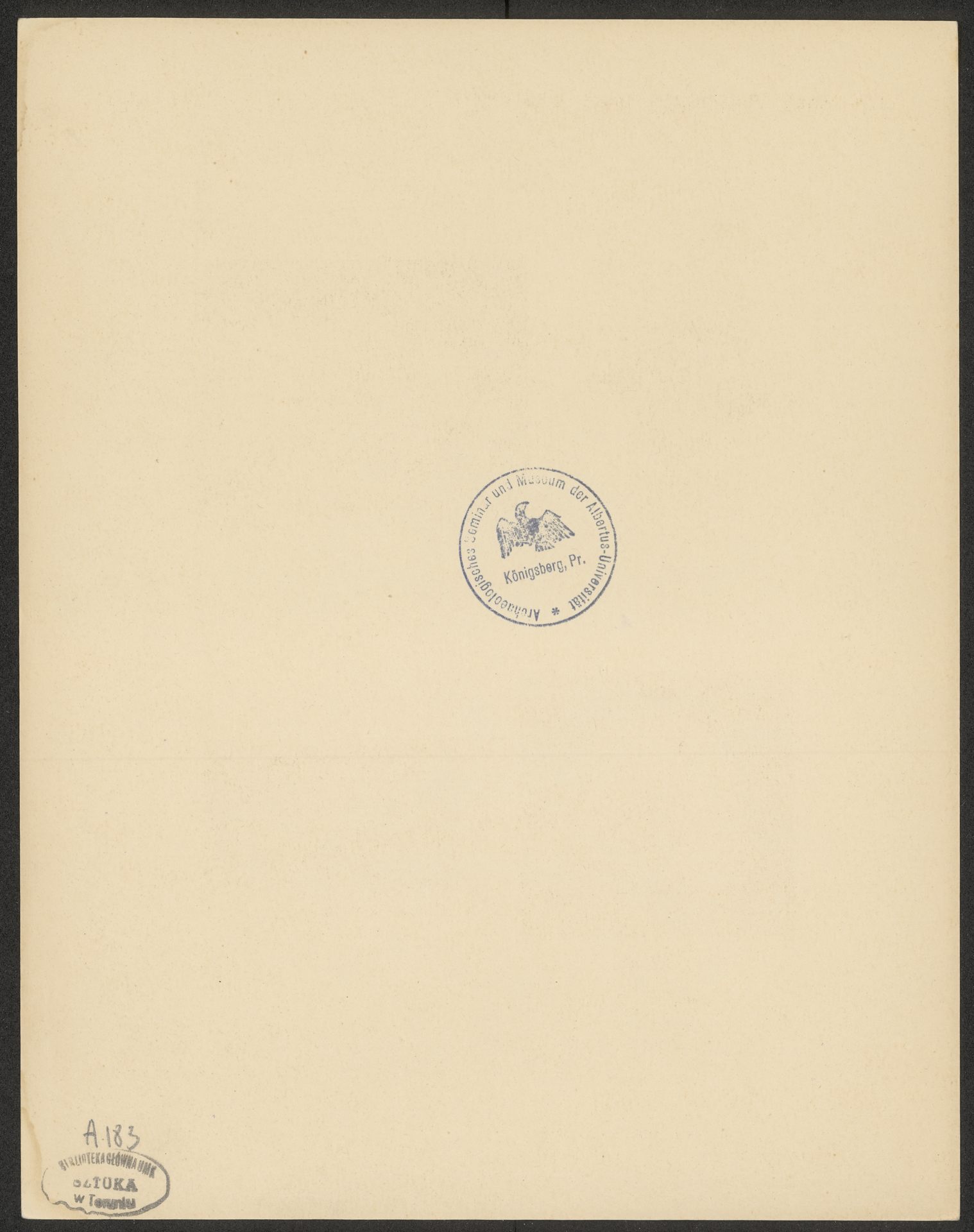 "Les vases plastiques dans l'antiquité" - okrągła pieczęć na awersie tablic: Archeologisches Semminar und Museum der Albertus-Universität Königsberg, Pr.