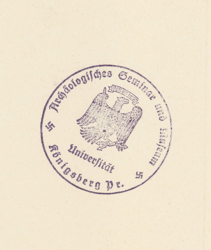 - Okrągła pieczęć na awersie tablic: Archäologisches Semminar und Museum Universität Königsberg Pr.