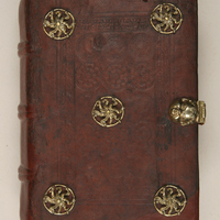 Sygnatury D.5 (wyklejka górnej okładziny) - Kammerbibliothek księcia Albrechta Hohenzollerna oraz 1853 (wyklejka górnej okładziny) - Państwowa i Uniwersytecka Biblioteka w Królewcu