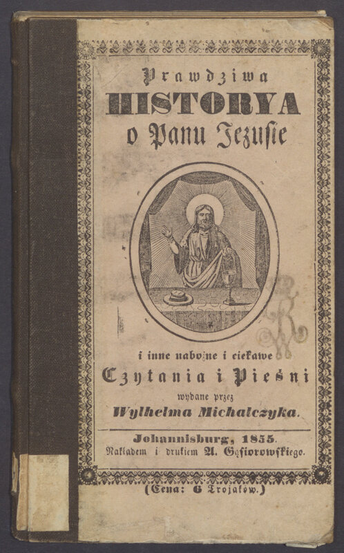 Prawdziwa historya o bolesney męce i śmierci, o cudownem zmartwychpowstaniu i wniebowstąpieniu Odkupiciela i Pana naszego Jezusa Chrystusa tudzież inne nabożne i ciekawe czytania (...) dla użytku i zbudowania bogoboynych chrześcijan prawowiernych - pieczątka owalna introligatora: WIlhelm Fuchs Buchbindermeister.